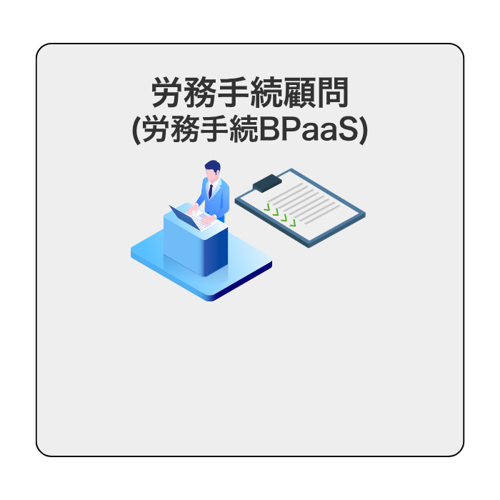 「労務相談顧問」「クラウド導入支援」「労務手続き顧問BPaaS」「給与計算顧問BPaaS」を通じて、